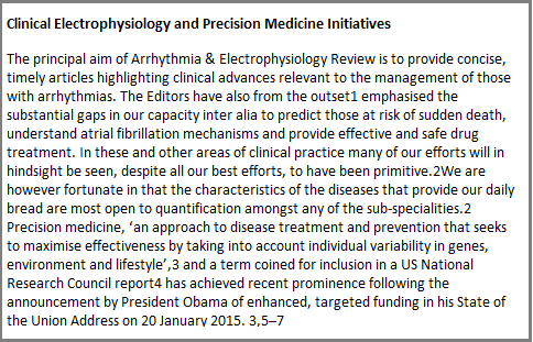 The principal aim of Arrhythmia & Electrophysiology Review is to provide concise, timely articles highlighting clinical advances relevant to the management of those with arrhythmias. The Editors have also from the outset1 emphasised the substantial gaps in our capacity inter alia to predict those at risk of sudden death, understand atrial fibrillation mechanisms and provide effective and safe drug treatment. In these and other areas of clinical practice many of our efforts will in hindsight be seen, despite all our best efforts, to have been primitive.2
