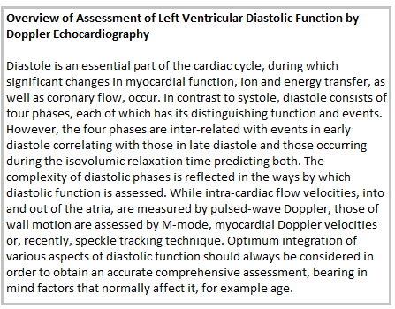 Diastolic Function in Fast Heart Rate