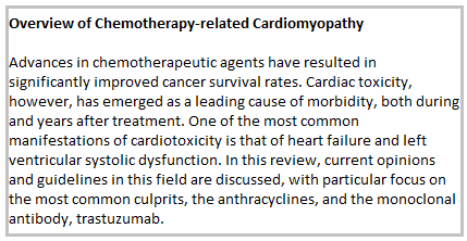A number of strategies and agents have been examined for potential use in preventing HF or LVSD related to anthracycline therapy, with varying levels of success.26,35–61 Such strategies include attempts to reduce peak plasma concentrations, prevention of iron-dependent free-radical formation52 and the use of evidence-based HF medications.