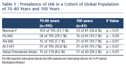 The prevalence of partial (P) and advanced A–IAB is rare before the age of 50. In our experience8 (see Table I), the prevalence is much higher with advancing age. In centenarians the prevalence of A-IAB is higher than that of P-IAB. Also ageing increases the prevalence of AF/Afl, being 10 % at ages 70–80 and 26 % in centenarians.