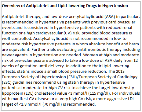 By blocking the synthesis of 3-hydroxy-3-methylglutaryl coenzyme A reductase, statins induce consistent and predictable reductions in circulating LDL-cholesterol and triglycerides, and have a small effect on high-density lipoprotein (HDL)-cholesterol. In addition, these agents exhibit ancillary actions attributed to reductions in isoprenoid cholesterol intermediates and reductions in dolichols, geranylgeranoic acid and farsenylfarsenoic acid. These actions may provide a pleiotropic mechanism by which statins exert actions on blood pressure as well as target organ damage associated with hypertension. Statins improve endothelial function by increasing the bioavailability of nitric oxide, promoting reendothelialisation, reducing oxidative stress and inhibiting inflammatory responses.18 Increased angiotensin II sensitivity predisposes to hypertension and plaque instability. The increased sensitivity to angiotensin II in healthy young subjects with isolated hypercholesterolaemia can be partly restored by therapy to reduce the levels of LDL-cholesterol using statins. There is evidence that statins downregulate angiotensin II type 1 (AT1)-receptor expression.19