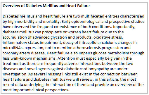 HF and DM frequently co-exist in a bidirectional relationship as it is proposed by pathophysiological and epidemiological data. At the moment several pathophysiological connections have been proposed but we cannot definitively conclude on the pathophysiological mechanisms precipitating this complex interaction. Both entities are characterised by high morbidity and mortality, and treatment must target the overall improvement as DM treatment can decompensate HF and vice versa. Novel therapeutic agents against diabetic cardiomyopathy are under investigation raising hopes for better management in the future.