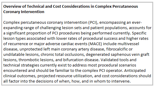 Evolution of Complex Percutaneous Coronary Intervention