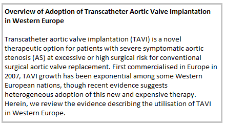 Introduction on Adoption of Transcatheter Aortic Valve Implantation in Western Europe