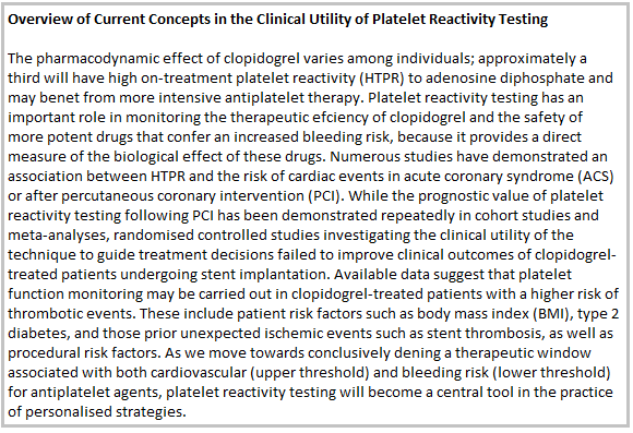 Introduction on Current Concepts in the Clinical Utility of Platelet Reactivity Testing