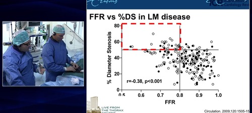 Following positive FFR in the left anterior descending artery the operators perform PCI to the LAD/LMS.