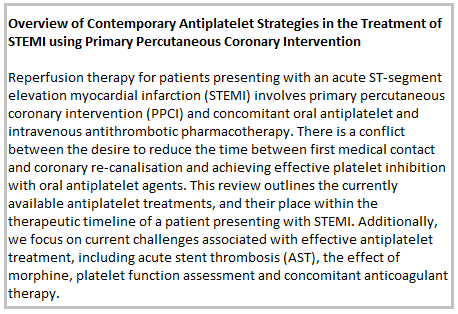 In addition to the array of oral antiplatelet therapy options in PPCI, there is continued debate regarding the optimal combination of antithombotic therapy. UFH and bivalirudin are most commonly used and the European guidelines for STEMI support their use with a Class I indication.27 The evidence supporting use of bivalirudin derived from HORIZONSAMI, 26 which demonstrated that bivalirudin compared with UFH and routine use of GPIs was associated with a reduction in mortality and major bleeding at 30 days, with a survival benefit that extended to 3 years. Further support for bivalirudin’s bleeding safety was demonstrated in the open-label European Ambulance ACS Angiography (EUROMAX) trial,28 comparing pre-hospital administration of bivalirudin versus UFH or low-molecular-weight heparin (LMWH) with optional use of GPI (58.5 % routine use). However, both trials were associated with an increased rate of AST with the use of bivalirudin and the elevated bleeding rate observed in the UFH arm of both studies has been attributed to the high rates of GPI use.