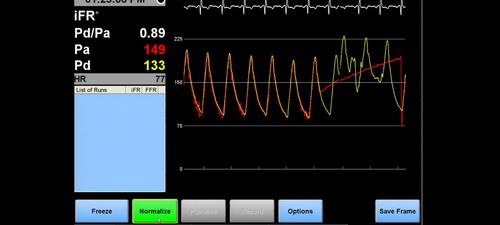 Dr Davies illustrates the insertion of the Verrata wire into the guiding catheter; remember the crucial point of removing the needle introducer before normalisation!