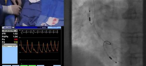 Dr Davies shows us how to advance the Verrata wire distally in the coronary artery, prior to making physiological measurements. Care is paid to the position of the guiding catheter and the position of the wire distally, as well as how to prepare to make a recording