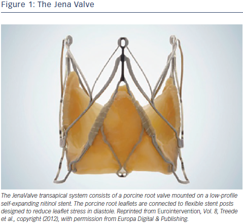 Several initial reports demonstrated feasibility and successful treatment of aortic regurgitation using the JenaValve.25–30 In the largest series of 31 patients, transapical TAVR with a Je