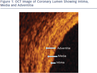 tle atherosclerosis can be seen with OCT.32 This allows for better visualization of the lumen, intima, media and adventitia where coronary pathology requiring evaluation is most prevalent (Figure 1).