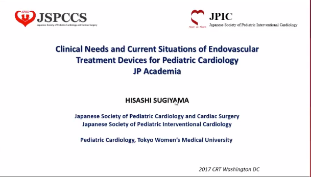 Clinical Needs and Current Situations of Endovascular Treatment Devices for Pediatric Cardiology–JP Academia - Hisashi Sugiyama at CRT 2017.