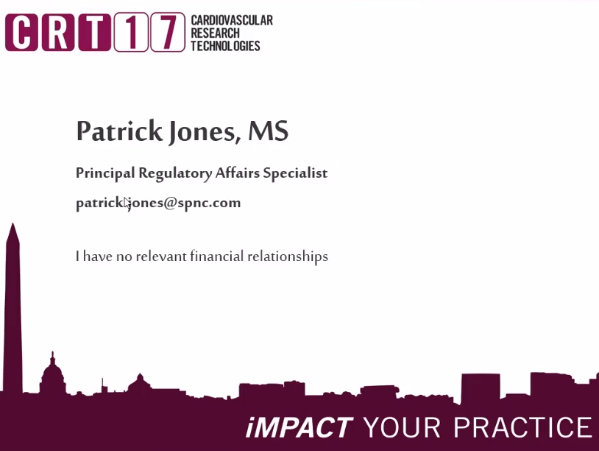Global Experience with Peripheral DCBs/Stent Studies: Spectranetics - Patrick Jones at CRT 2017.