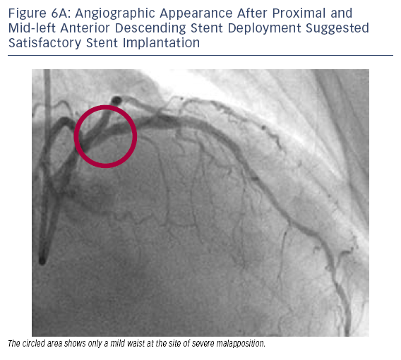 ross stent malapposition (see Figure 6B).In this case, OCT was able to diagnose stent malapposition and was used to guide the post-dilation strategy. OCT also confirmed optimal final stent apposition.